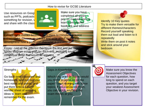 The best revision techniques for GCSE begins with establishing exactly what you want to achieve. Thousands of GCSE English maths and science activities. A good revision tool to use is flash cards. For English literature exams.